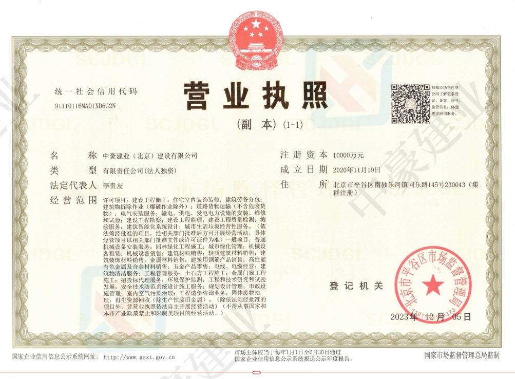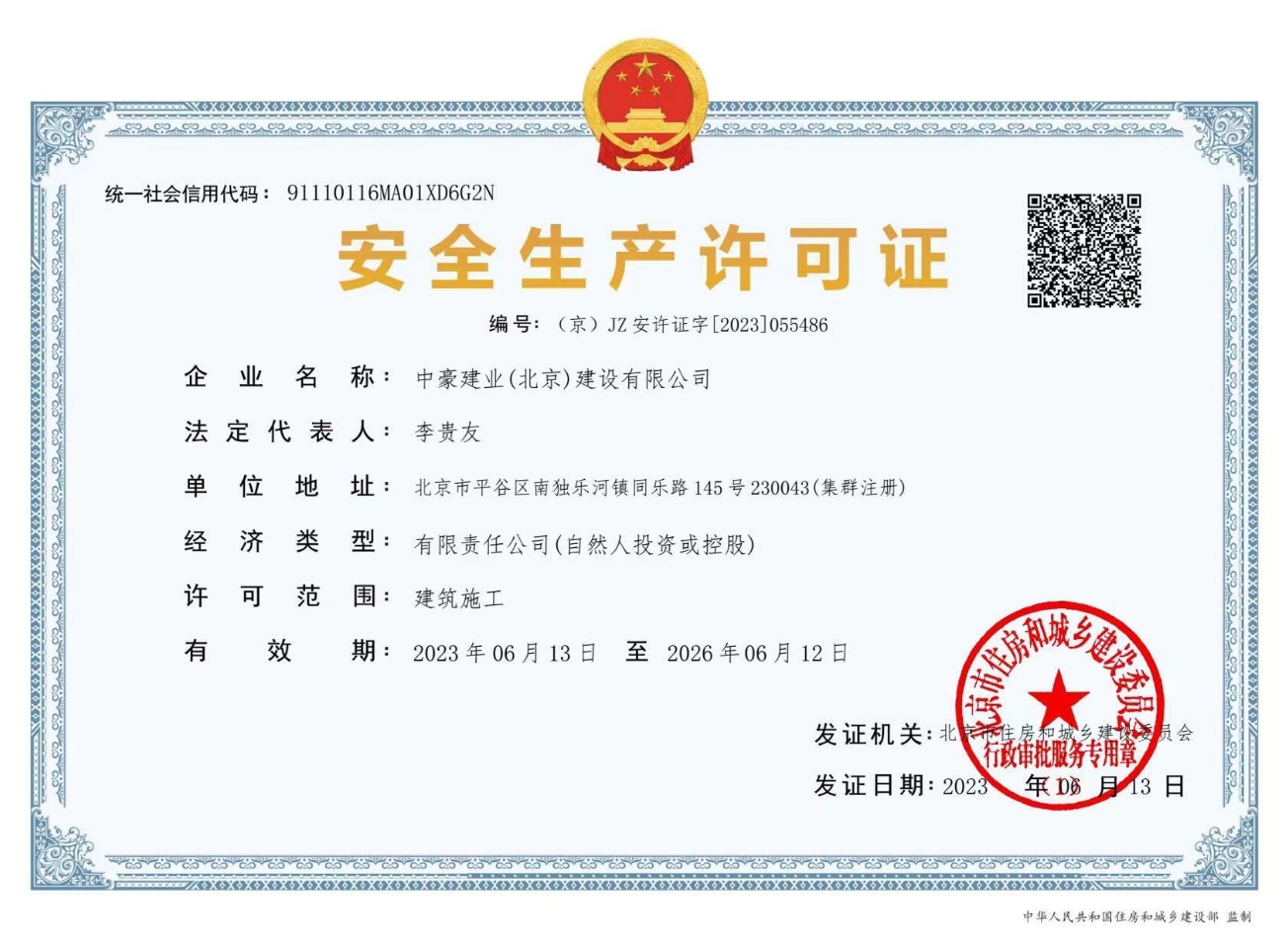 中豪建業(yè)(北京)建設有限公司資質范圍及等級: